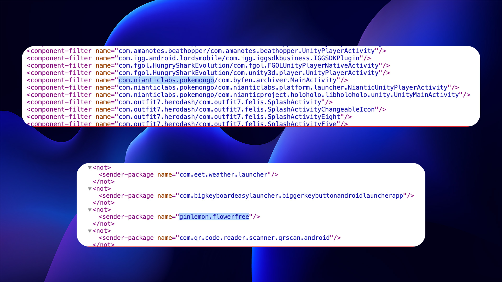 If you're curious about the list, here it is: https://www.gstatic.com/android/config_update/10222025-ifw.xml. The list has essentially two groups. The first list contains hundreds of games that appear to have been developed with the Unity game engine, such as Pokémon GO. The group contains apps that typically would launch them, like Smart Launcher (its application ID is "ginlemon.flowerfree", you can see that by going to Smart Launcher's Google Play page and checking its URL: https://play.google.com/store/apps/details?id=ginlemon.flowerfree)
